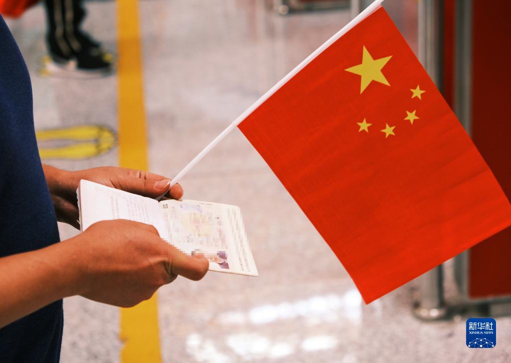 4月29日,在北京首都國際機場(chǎng),一位拿著(zhù)國旗和護照的公民等待入境。