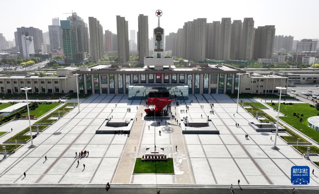這是4月29日拍攝的石家莊解放紀念館(無(wú)人機照片)。