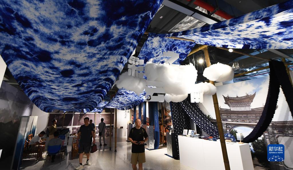 4月30日,觀(guān)眾在參觀(guān)2023海南錦繡世界文化周非物質(zhì)文化遺產(chǎn)傳統織繡印染技藝項目精品展。