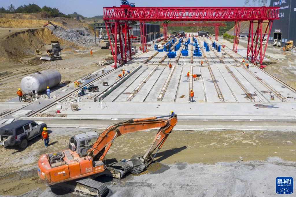 4月30日,在329國道浙江省杭州市臨安區的一處改建工程項目現場(chǎng),施工人員在現場(chǎng)忙碌(無(wú)人機照片)。