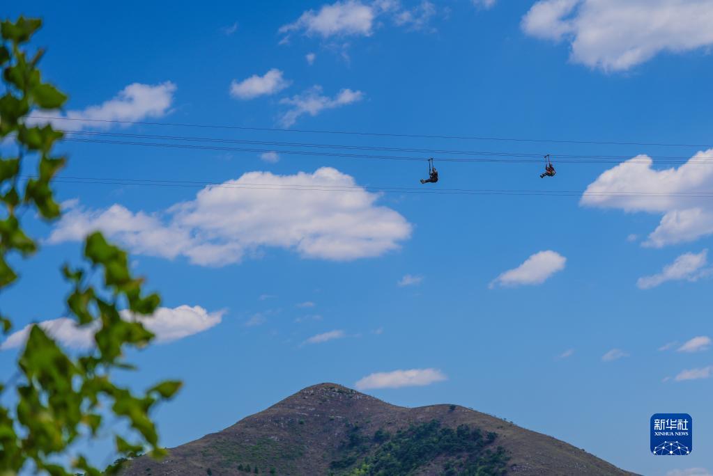 4月30日,游客在河北省遵化市一景區體驗空中索道游樂(lè )項目。