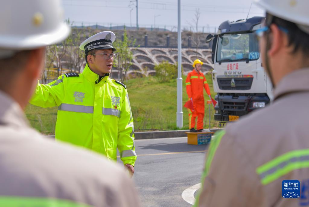 4月30日,烏魯木齊市公安局交通警察支隊宣傳科民警李亮東向活動(dòng)參與者講解交通安全知識。