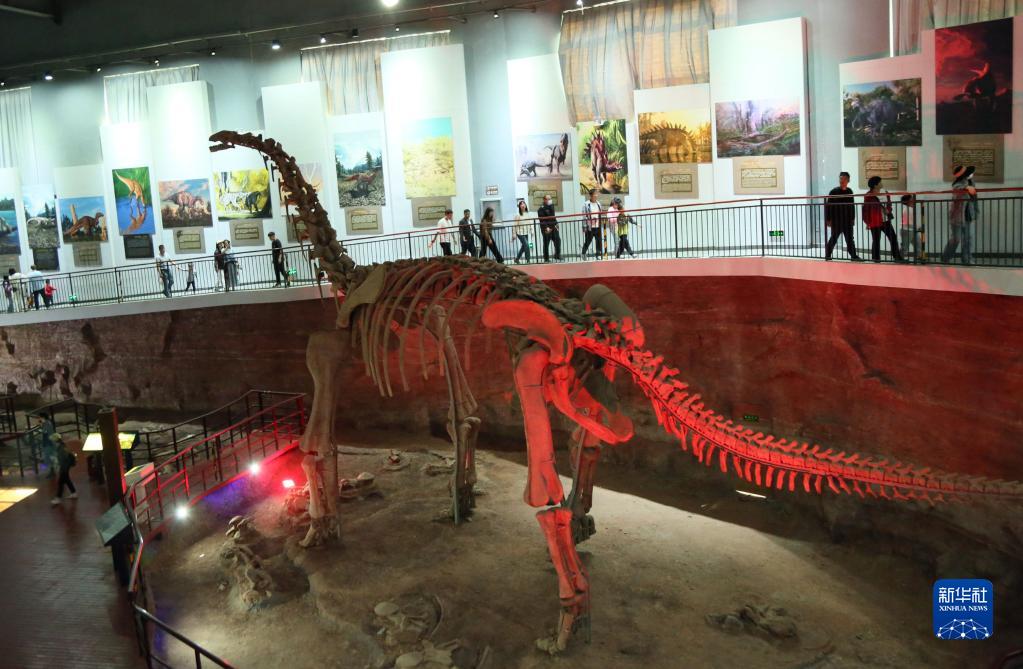 4月30日,游客在河南汝陽(yáng)恐龍國家地質(zhì)公園恐龍博物館參觀(guān)。