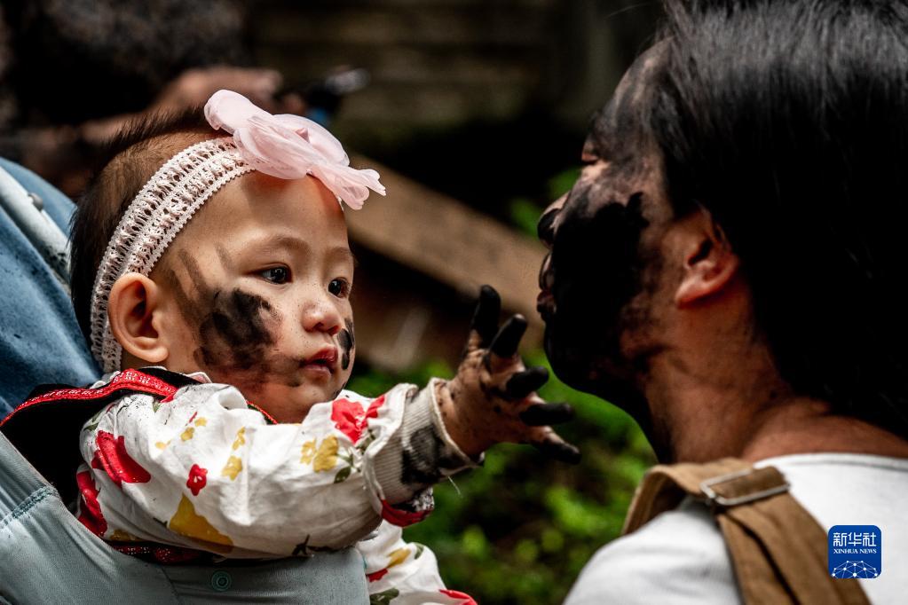 5月1日,云南省墨江哈尼族自治縣舉行哈尼“抹黑臉”狂歡活動(dòng)。這是一名小朋友在活動(dòng)中玩耍。