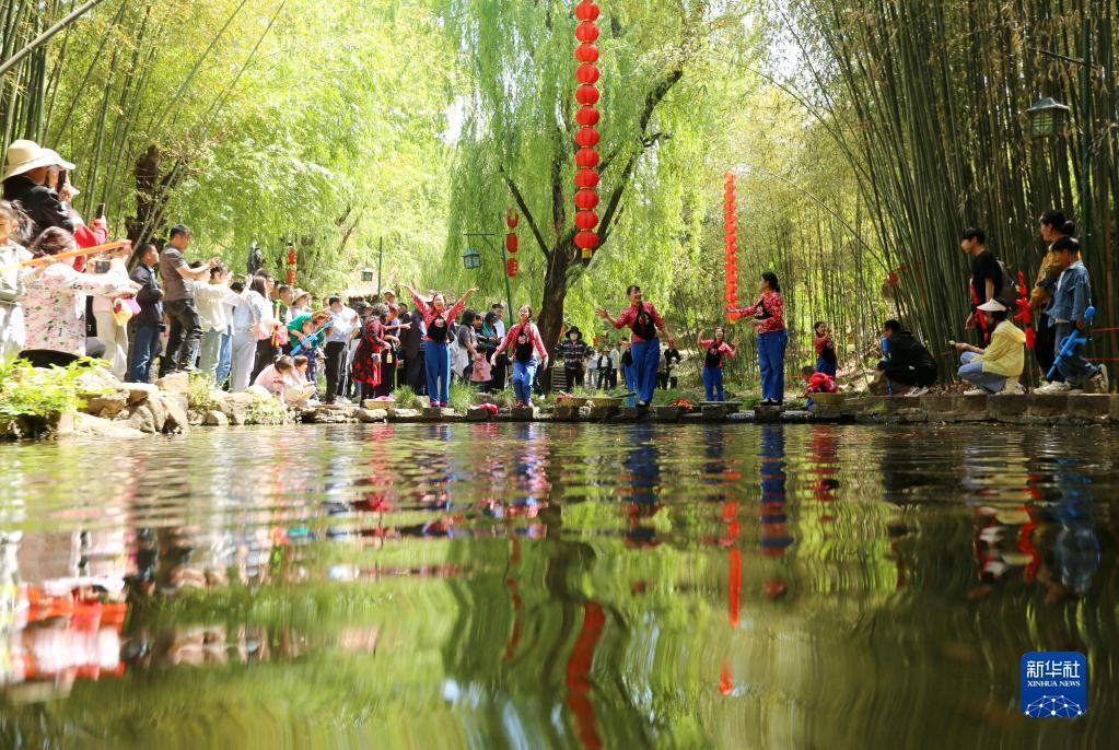 4月30日,游客在山東省臨沂市沂南縣銅井鎮竹泉村觀(guān)看民俗表演。