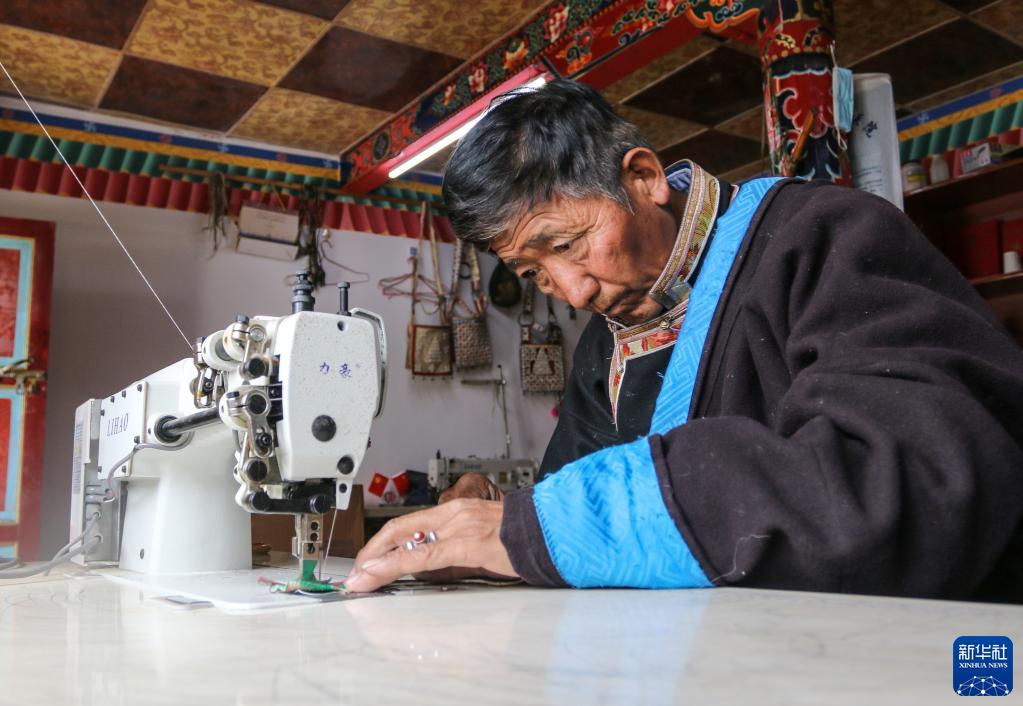 61歲的索朗群培回憶,他小時(shí)候見(jiàn)到村里的大人騎在有馬包的馬上,特別威風(fēng),讓他對制作馬包產(chǎn)生了濃厚興趣。21歲時(shí),他師從當地老藝人多布杰學(xué)習馬包制作技藝。如今,他已是林芝市第一批市級非物質(zhì)文化遺產(chǎn)項目中馬包手工制作技藝的傳承人。