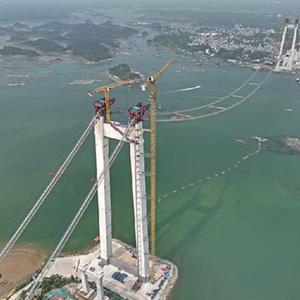 近日,位于欽州市的廣西最長(cháng)跨海大橋——龍門(mén)大橋項目建設全面進(jìn)入上部結構施工階段,其中龍門(mén)大橋主通航孔橋已完成主纜的架設,目前正在進(jìn)行緊纜施工。