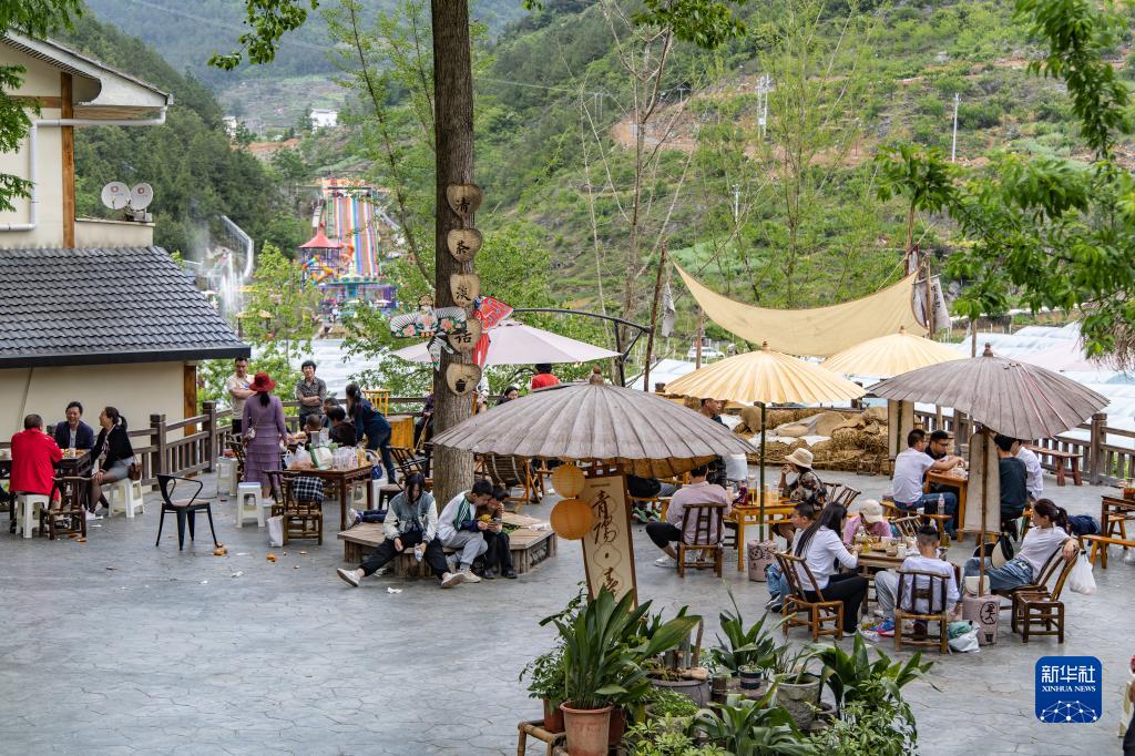5月2日,游客在重慶市巫溪縣通城鎮龍池村一家茶攤喝茶休閑。