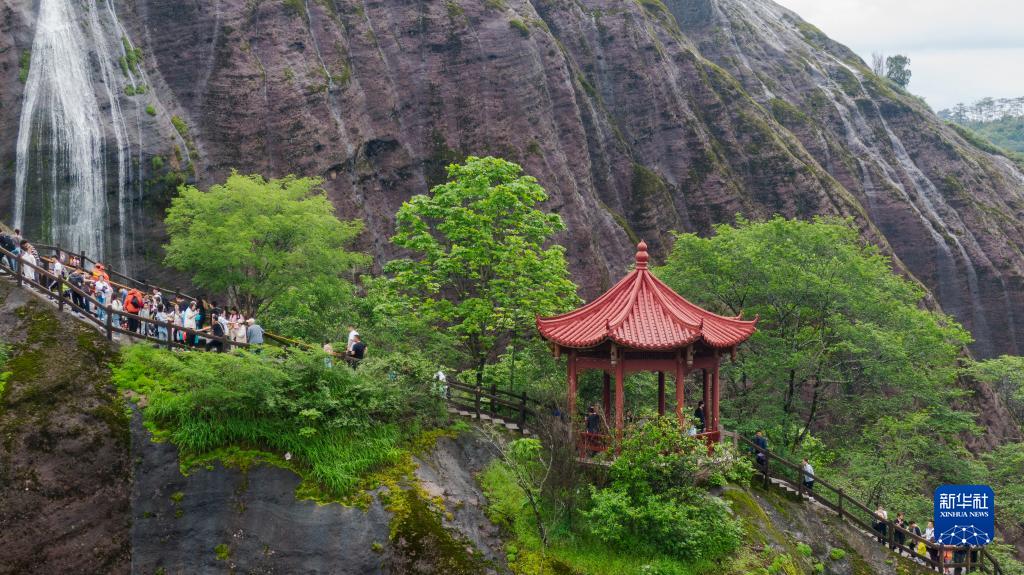 4月29日,游客在福建武夷山天游景區游覽(無(wú)人機照片)。