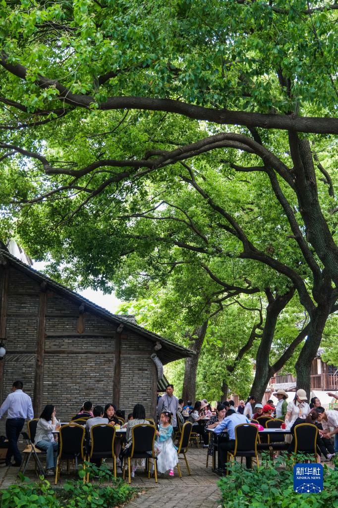 5月2日,游客在濮院時(shí)尚古鎮內休息、用餐。