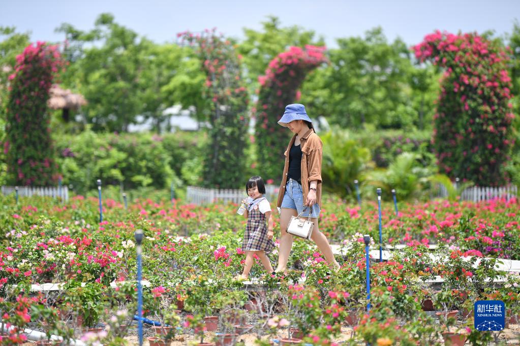 5月1日,游客在海南花梨谷文化旅游區游玩。