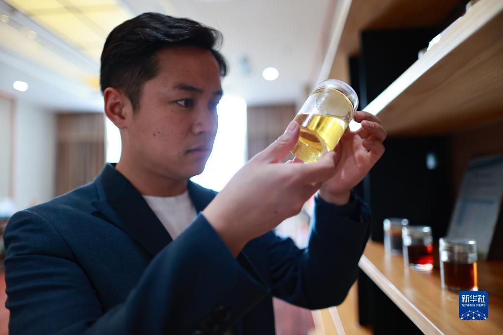 楊安仁查看成品桐油(4月18日攝)。