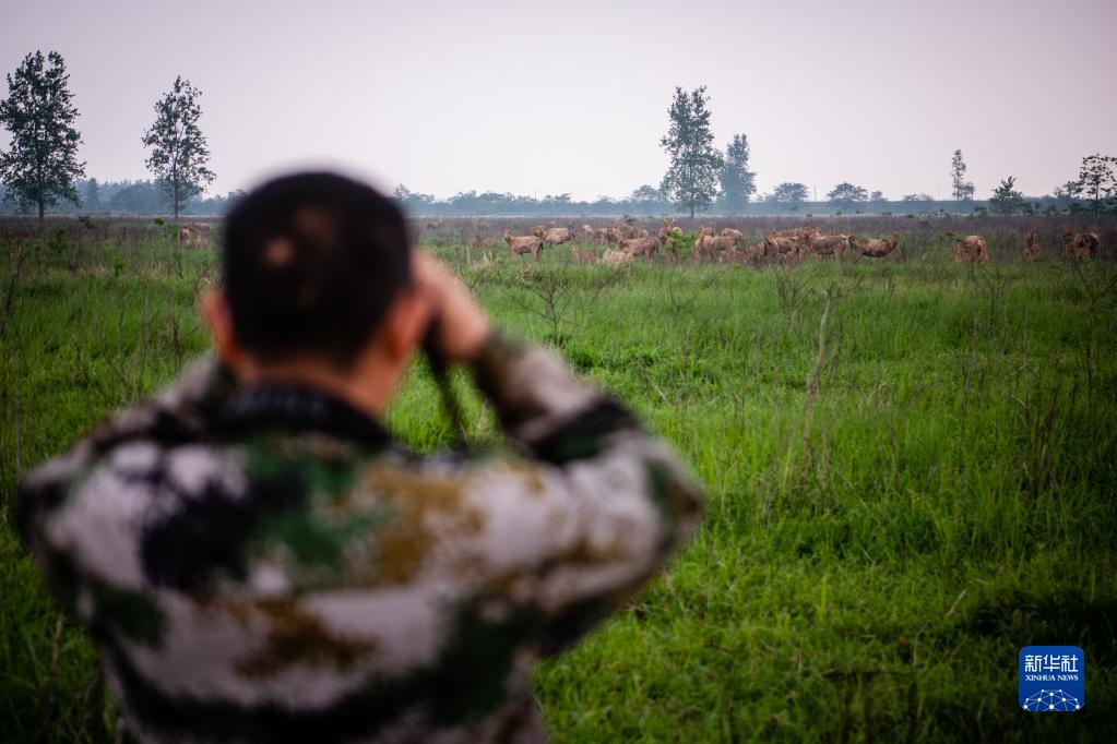 巡護隊伍通過(guò)望遠鏡、長(cháng)焦相機、無(wú)人機、視頻監測塔、紅外相機等工具,對1500余頭麋鹿進(jìn)行日常監測、年節律周期監測、種群動(dòng)態(tài)監測,并對保護區內的氣象數據、水文數據、地表水質(zhì)數據、植被類(lèi)型以及其他野生動(dòng)物情況進(jìn)行監測記錄。他們還需要承擔卡口值守、應急管理等工作。在他們的悉心照料下,這里成為適宜麋鹿種群棲息的家園。