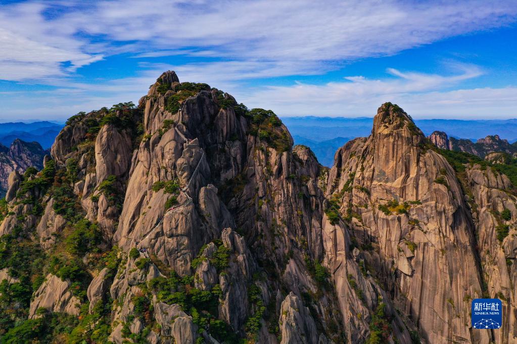 2022年10月20日,天高云淡,黃山蓮花峰風(fēng)景秀美。