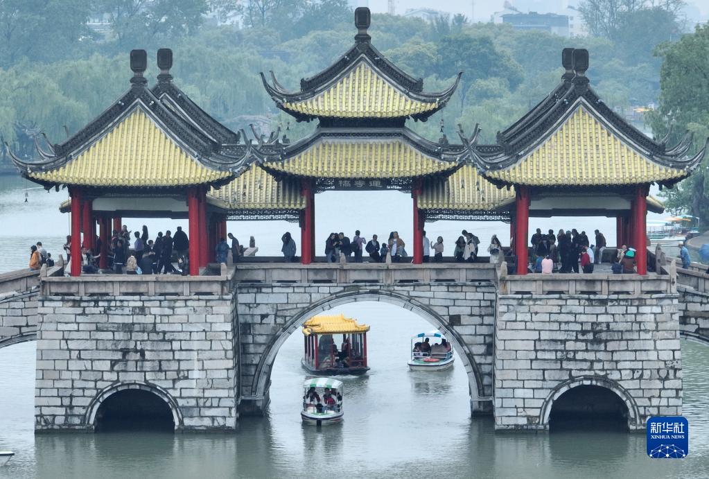 5月3日,游客在江蘇揚州瘦西湖風(fēng)景區游玩(無(wú)人機照片)。