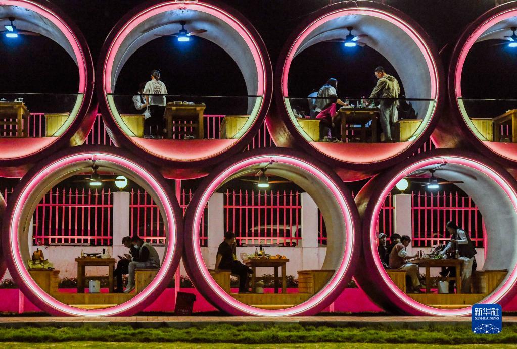 5月2日,游客在河北省遵化市一景區特色餐廳品嘗美食。