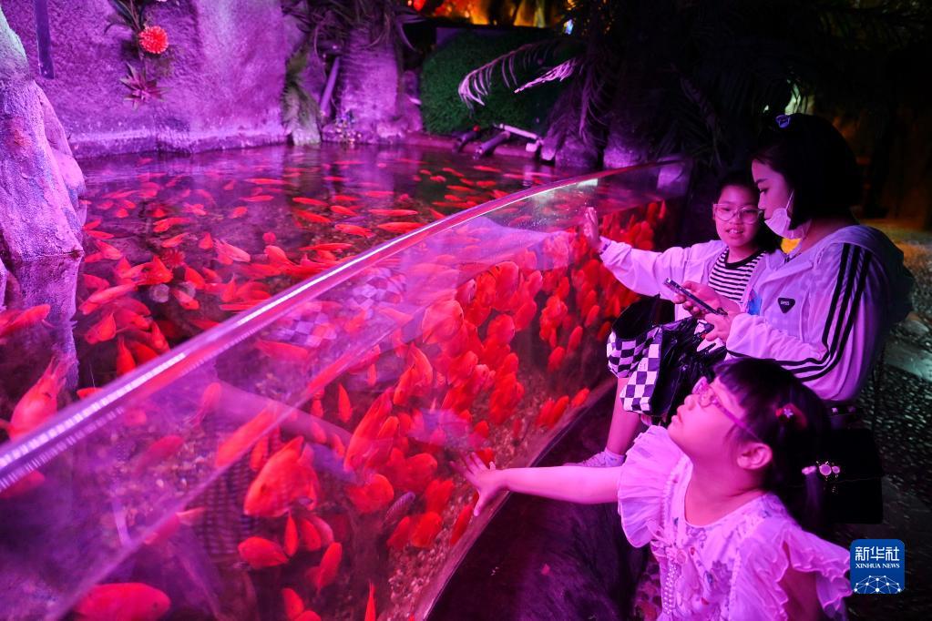 5月3日,游客在福州左海公園海底世界參觀(guān)。