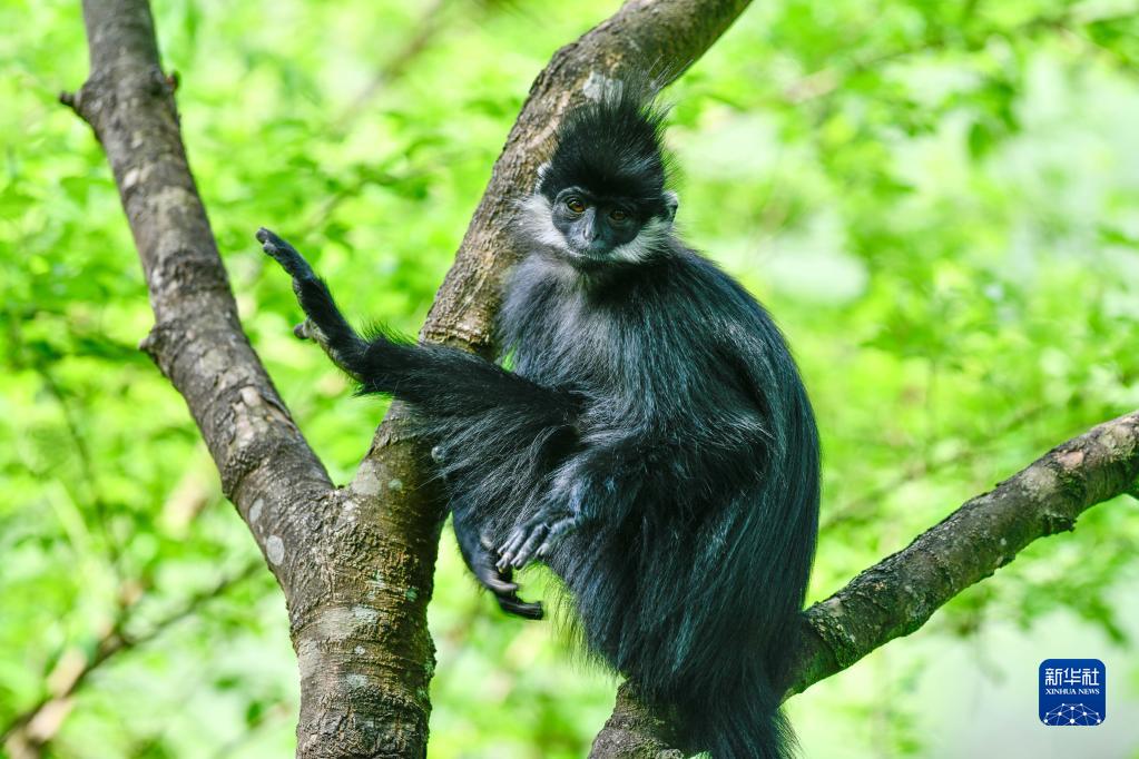 5月1日拍攝的貴州麻陽(yáng)河國家級自然保護區的黑葉猴。