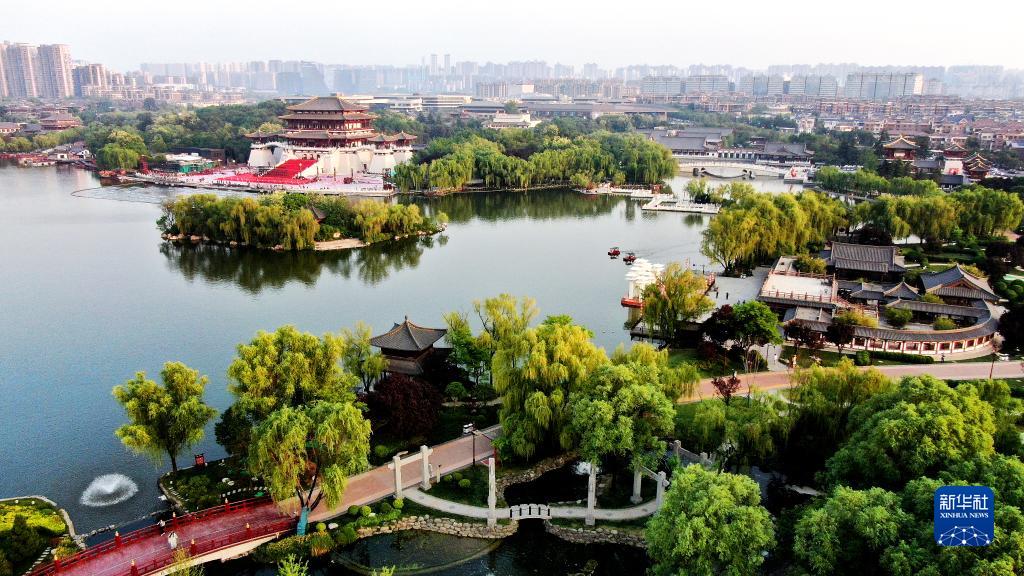 西安大唐芙蓉園(4月19日攝,無(wú)人機照片)。