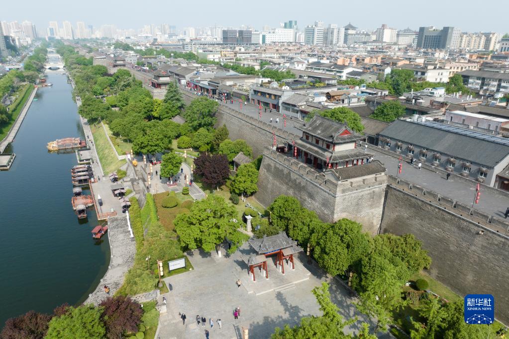 西安城墻南段(4月25日攝,無(wú)人機照片)。