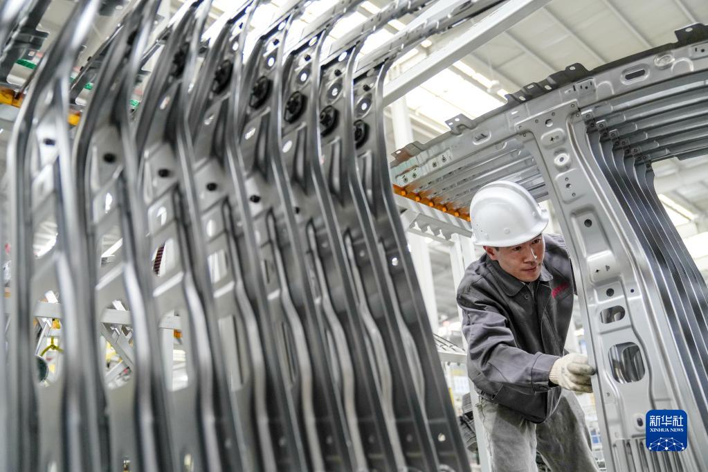 5月4日,在浙江省湖州市長(cháng)興經(jīng)濟技術(shù)開(kāi)發(fā)區一家汽車(chē)部件有限公司,工人生產(chǎn)新能源汽車(chē)T型梁。
