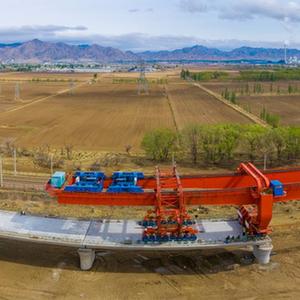 包銀高鐵內蒙古段首座跨鐵路特大橋箱梁架設完成