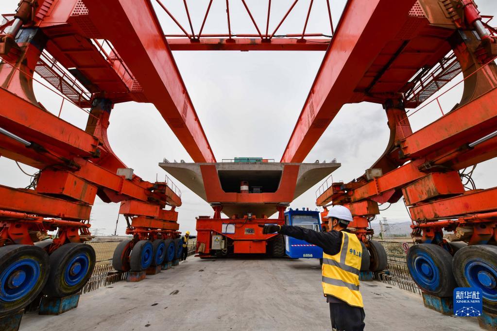 包銀高鐵內蒙古段首座跨鐵路特大橋箱梁架設完成