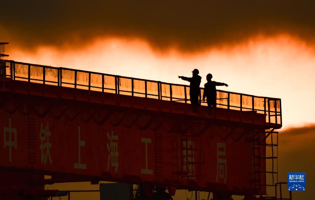 包銀高鐵內蒙古段首座跨鐵路特大橋箱梁架設完成