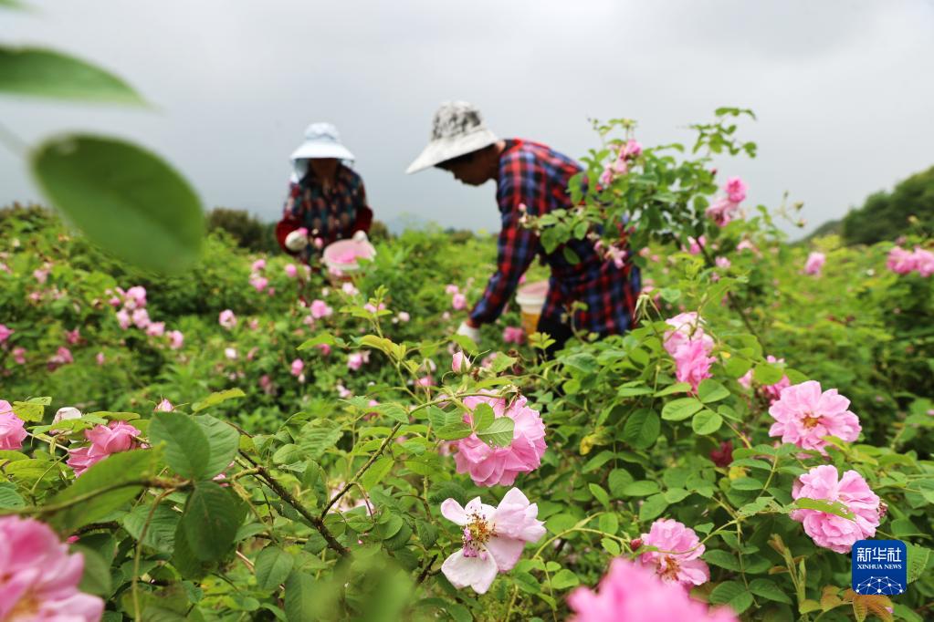 5月6日,花農在浙江省湖州市吳興區埭溪鎮上強村采摘玫瑰花。