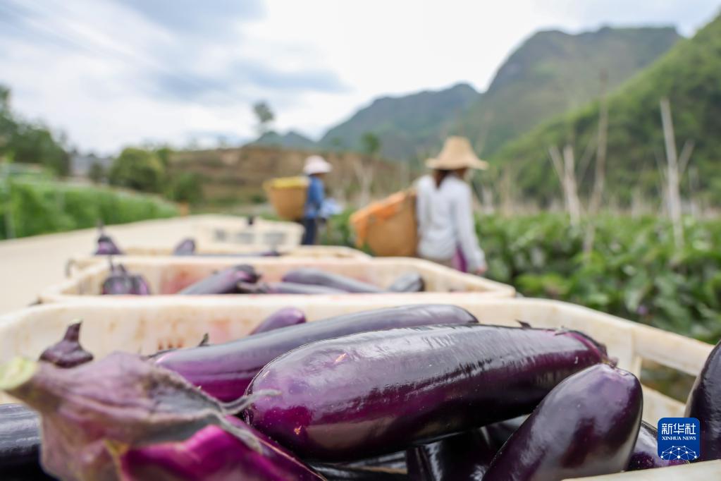 5月6日,村民在貴州省黔南布依族苗族自治州羅甸縣逢亭鎮上隆村采收茄子。