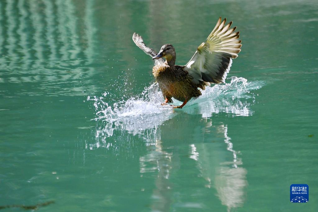 立夏時(shí)節,平均海拔3645米的西藏拉薩市拉魯濕地國家級自然保護區里,草綠水清鳥(niǎo)兒歡,景色誘人。新華社記者 張汝鋒 攝