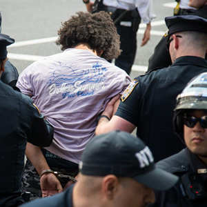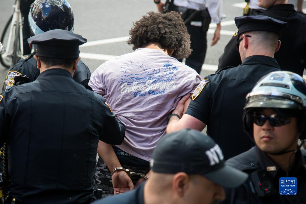 5月6日,在美國紐約,警察帶走抗議者。