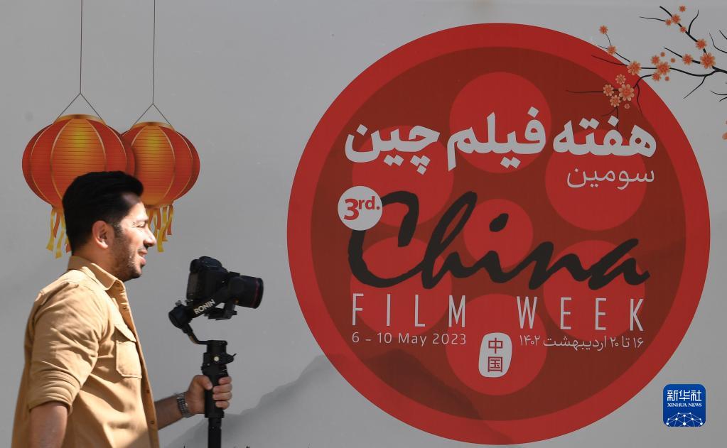 5月6日,在伊朗首都德黑蘭,一名男子從“中國電影周”海報前經(jīng)過(guò)。