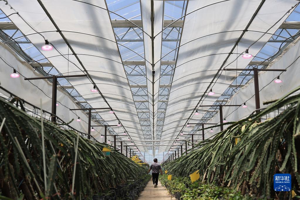 5月7日,種植戶(hù)在江蘇省揚州市江都區現代農業(yè)產(chǎn)業(yè)園大棚內觀(guān)察瓜果長(cháng)勢。
