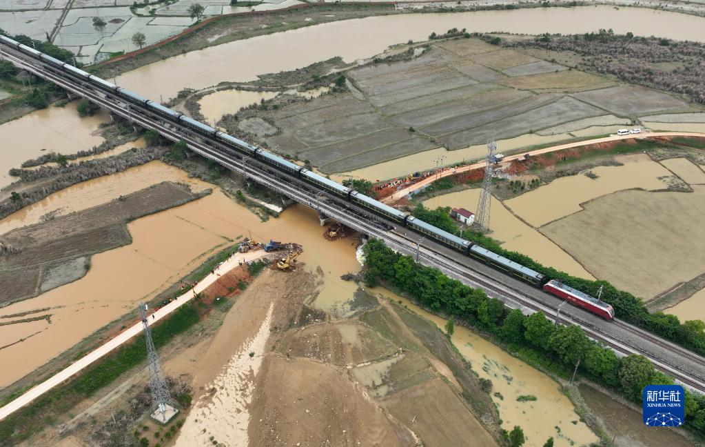 江西豐城京九線(xiàn)鐵路橋下河堤潰口順利合龍