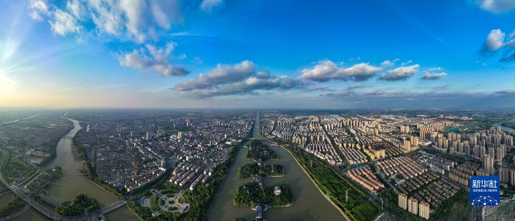 5月7日在江蘇省揚州市拍攝的江都水利樞紐(無(wú)人機全景照片)。