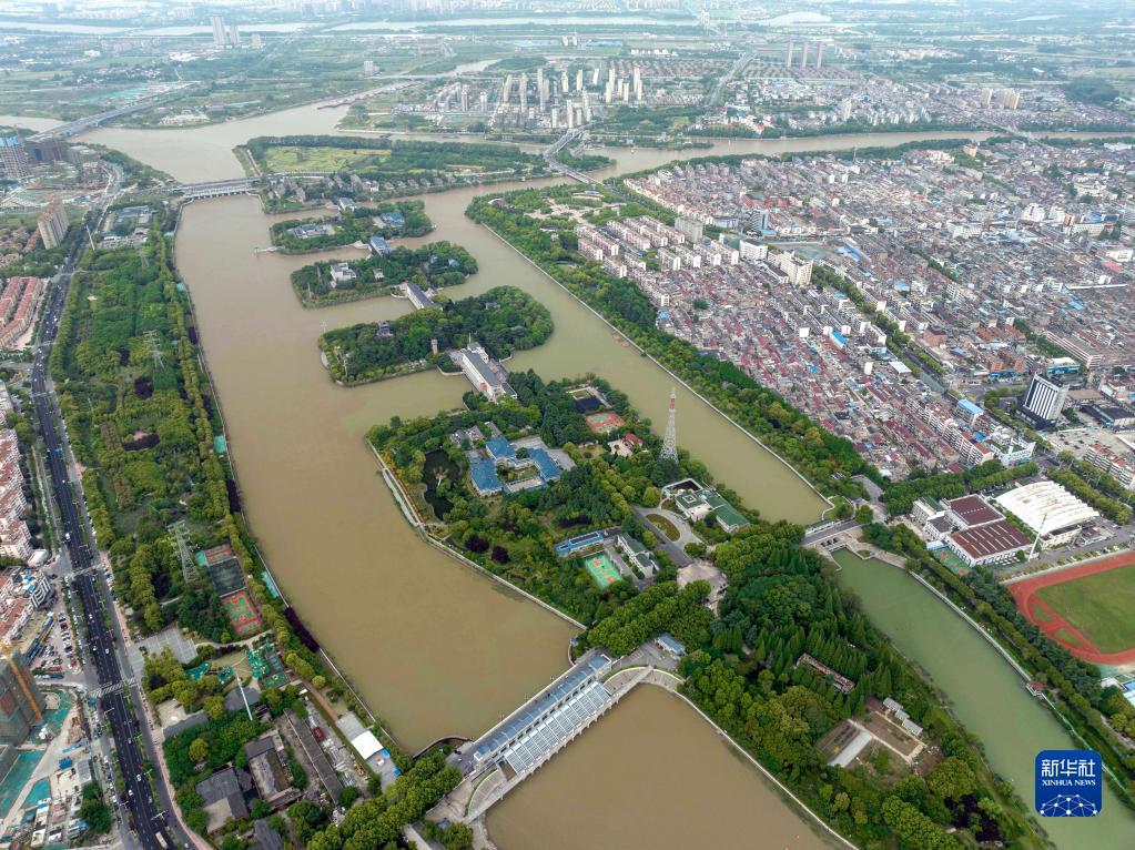 5月7日在江蘇省揚州市拍攝的江都水利樞紐(無(wú)人機照片)。