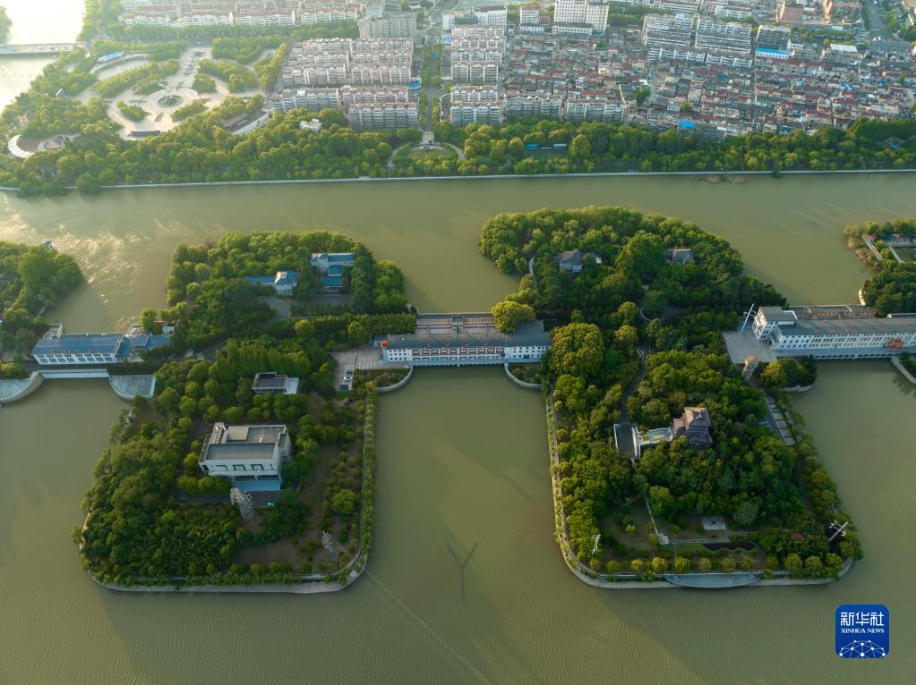 5月7日在江蘇省揚州市拍攝的江都水利樞紐(無(wú)人機照片)。