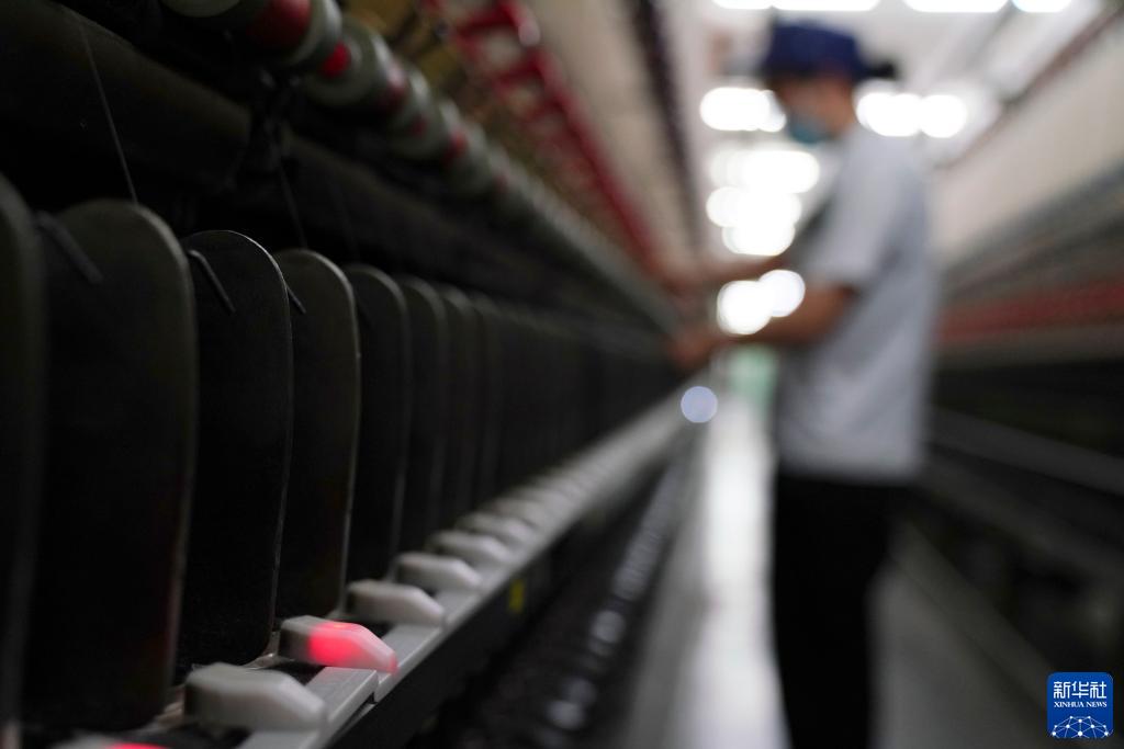 5月8日,在無(wú)錫一棉紡織集團長(cháng)江車(chē)間特高支紗生產(chǎn)線(xiàn)上,斷頭檢測系統自動(dòng)報警后,工人在處置。該生產(chǎn)線(xiàn)可批量生產(chǎn)達到世界領(lǐng)先水平的300支純棉紗線(xiàn)。