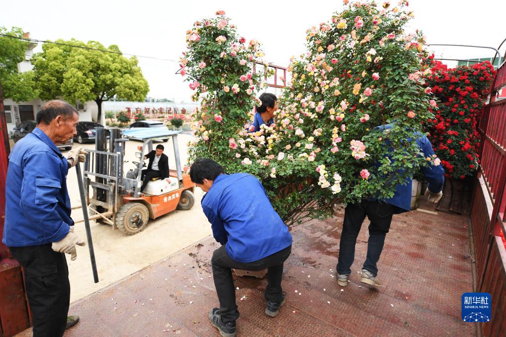 這是5月7日在河南省南陽(yáng)市臥龍區石橋鎮南陽(yáng)月季基地拍攝的月季發(fā)貨現場(chǎng)。