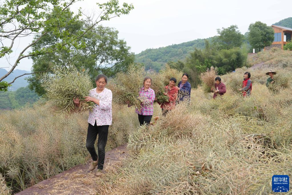 5月8日,在重慶市北碚區天府鎮中心村,村民運送收好的油菜。