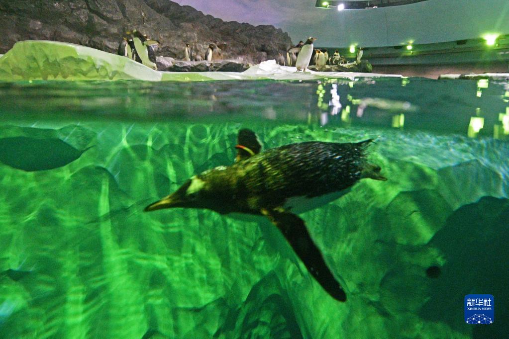 這是5月8日新加坡飛禽公園開(kāi)放當天拍攝的潛水的企鵝。