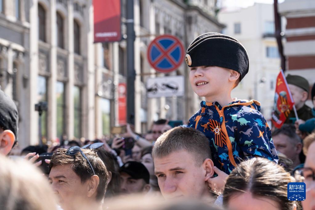 5月9日,人們在俄羅斯符拉迪沃斯托克市觀(guān)看閱兵式。