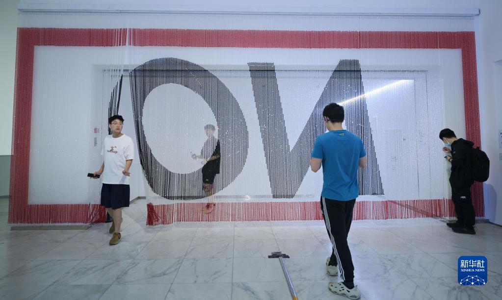 5月9日,參觀(guān)者在展覽現場(chǎng)觀(guān)賞參展作品《ON》。