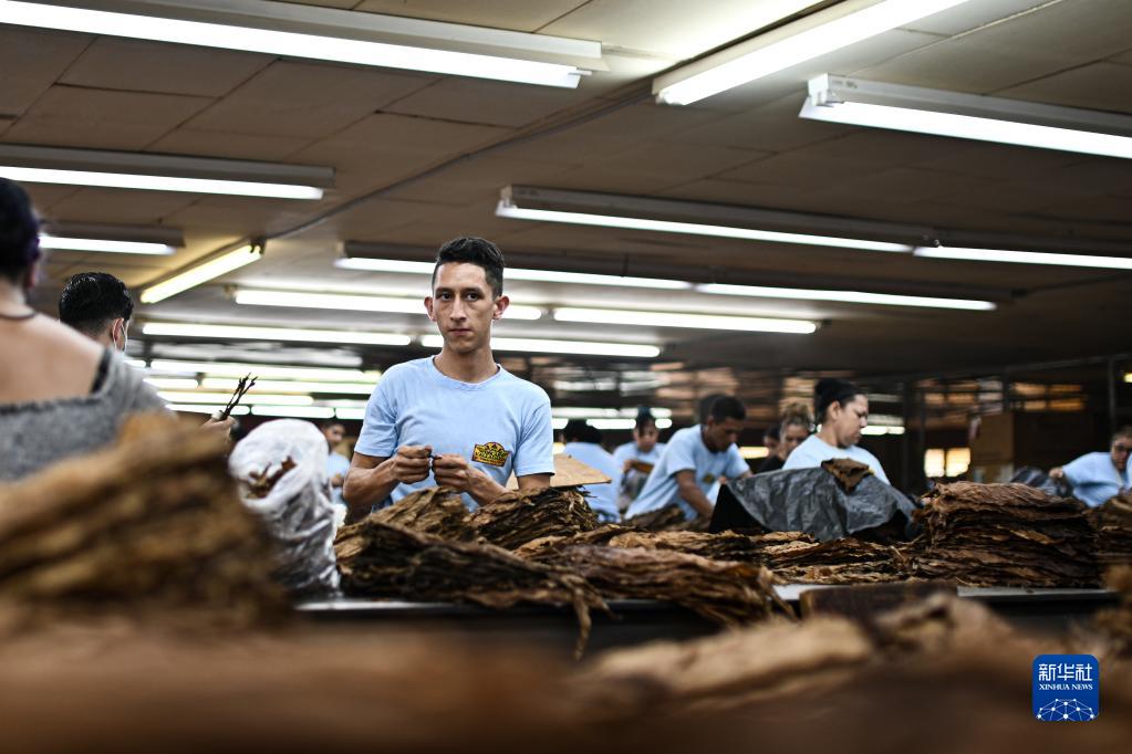 5月8日,工人在洪都拉斯南部城市丹利的一家雪茄工廠(chǎng)甄選煙葉。