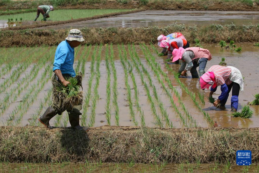5月9日,云南省曲靖市沾益區金龍街道大營(yíng)社區,農民在田間插秧。