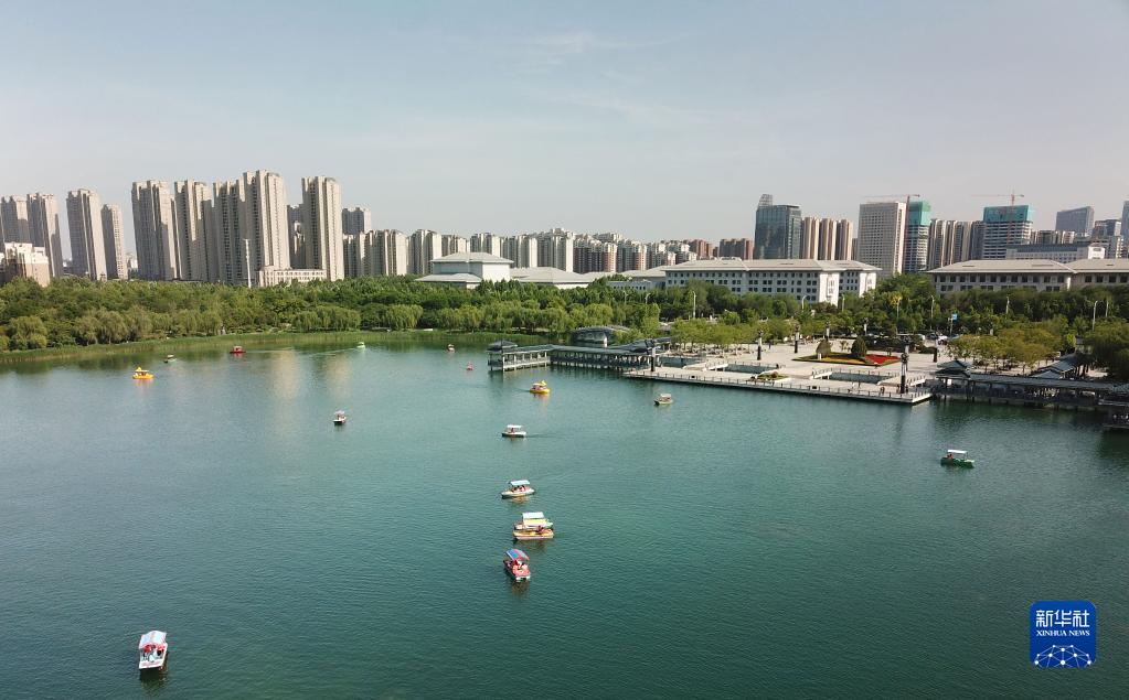 位于淄博市張店區的齊盛湖(5月8日攝,無(wú)人機照片)。