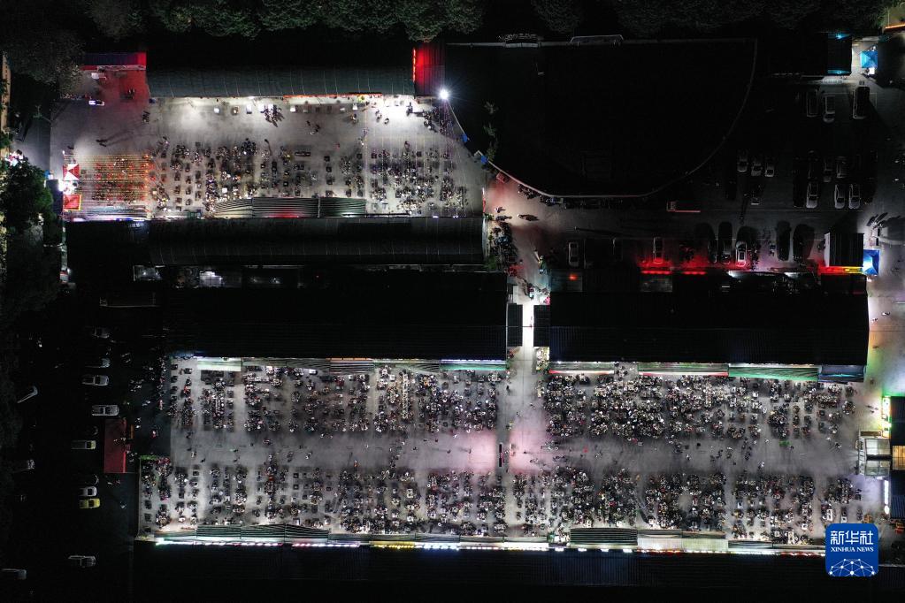 這是位于淄博市臨淄區的臨淄燒烤大院(5月8日攝,無(wú)人機照片)。