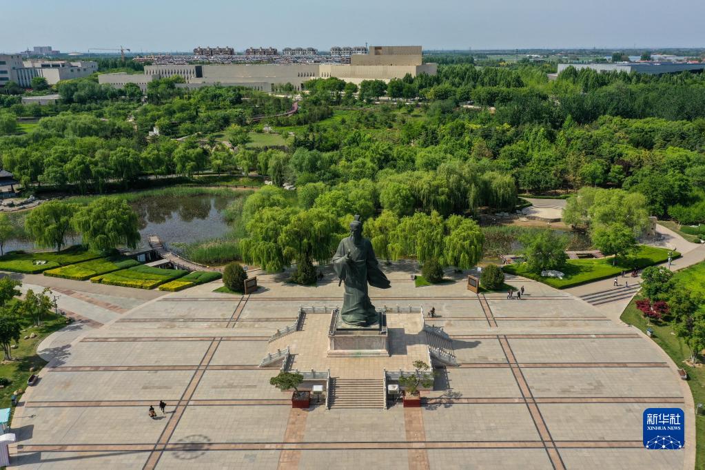 這是位于淄博市臨淄區的太公湖公園(5月8日攝,無(wú)人機照片)。