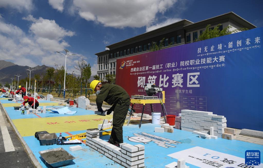 5月10日拍攝的西藏自治區第一屆技工(職業(yè))院校職業(yè)技能大賽砌筑比賽現場(chǎng)。